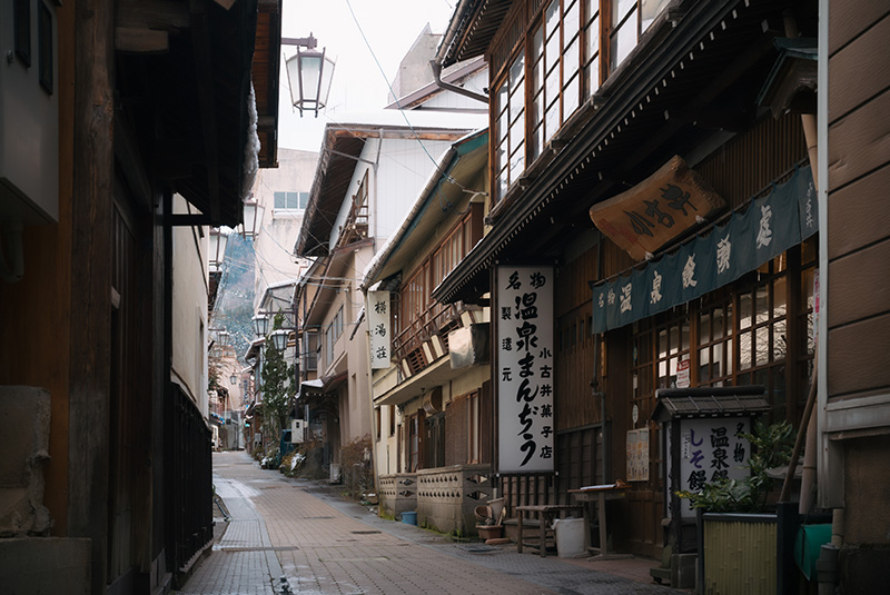 石畳の通りと古い街並みが残る静かな温泉街です。
